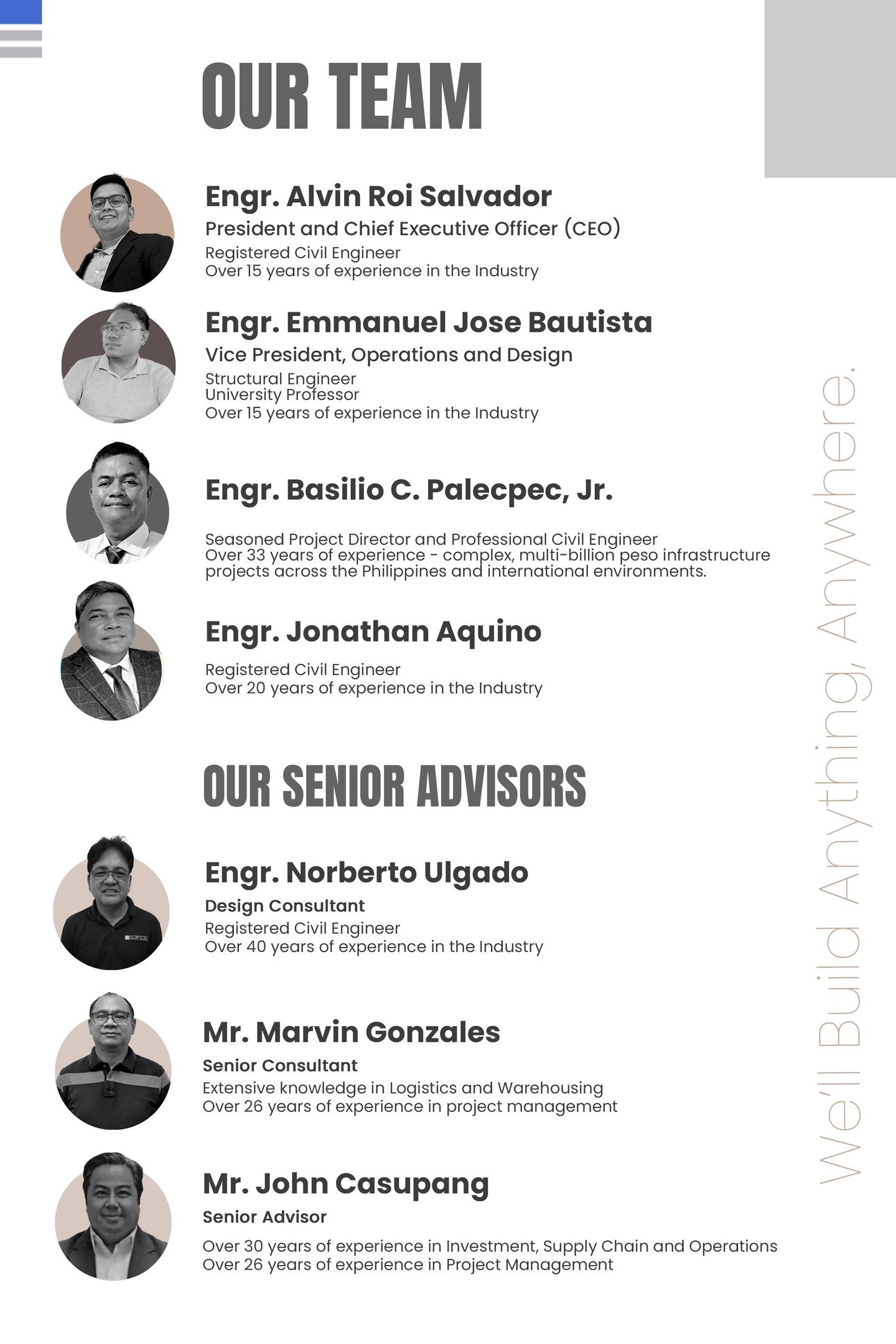 To be a Builder of Legacy and excellence, creating world-class structures rooted in sustainable practices. Through innovation and craftsmanship, we go beyond expectations - leaving a lasting impact on communities and transforming lives.